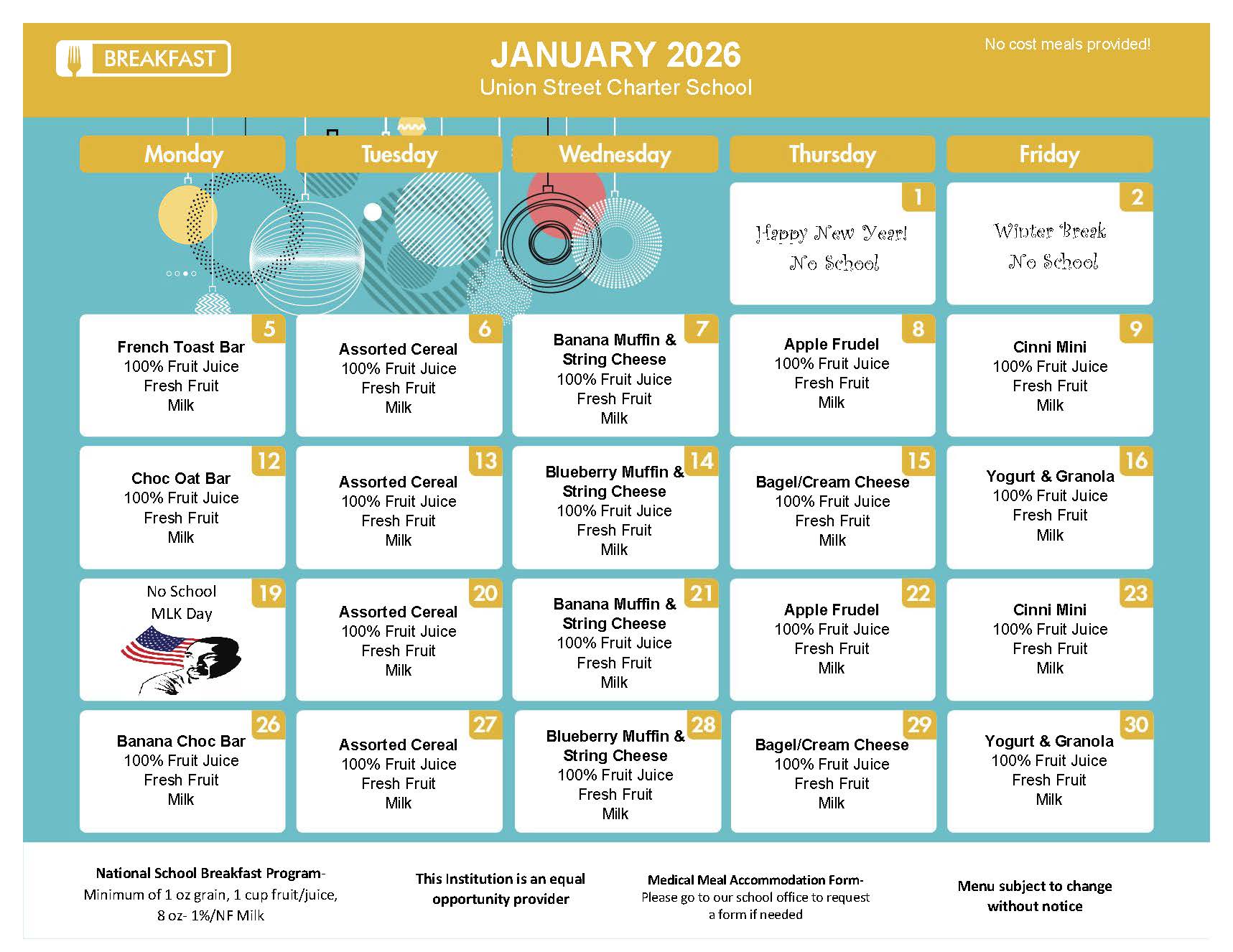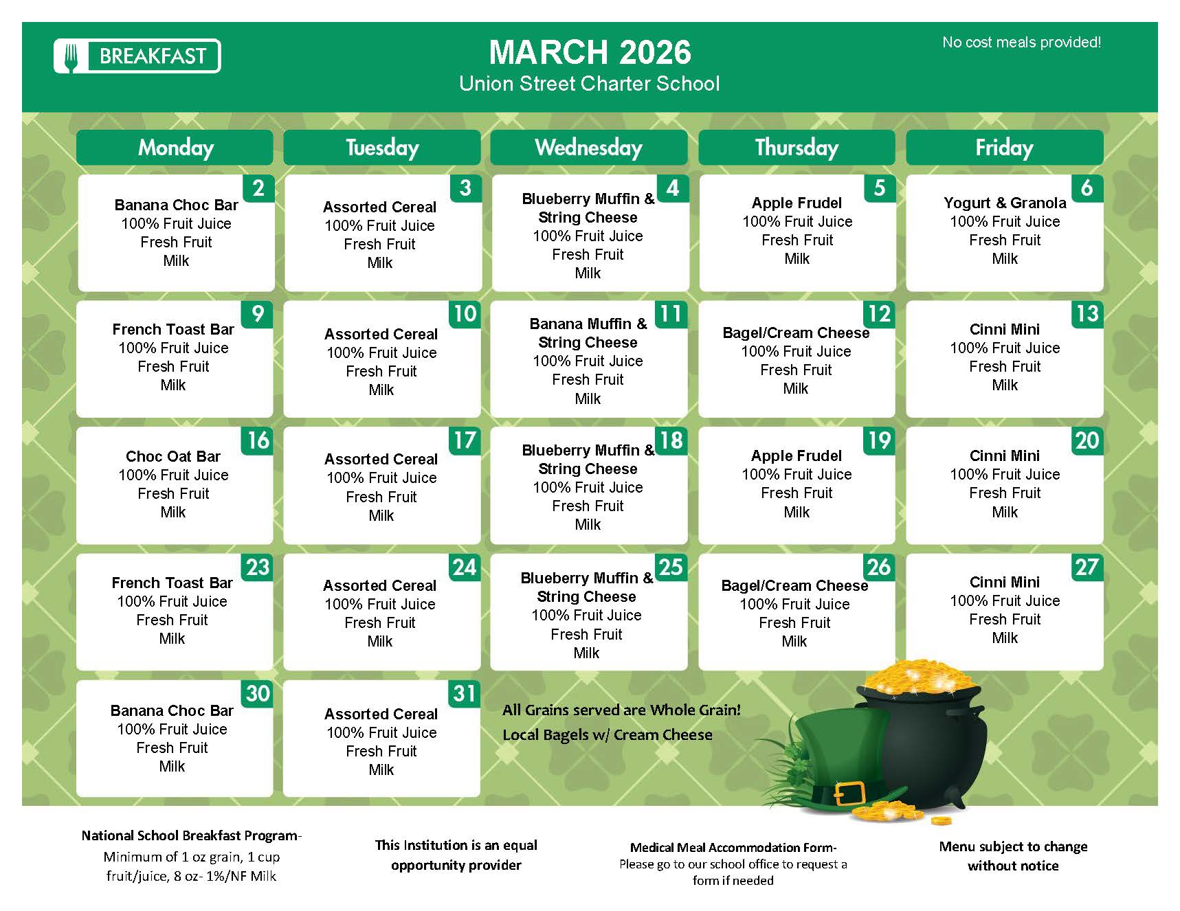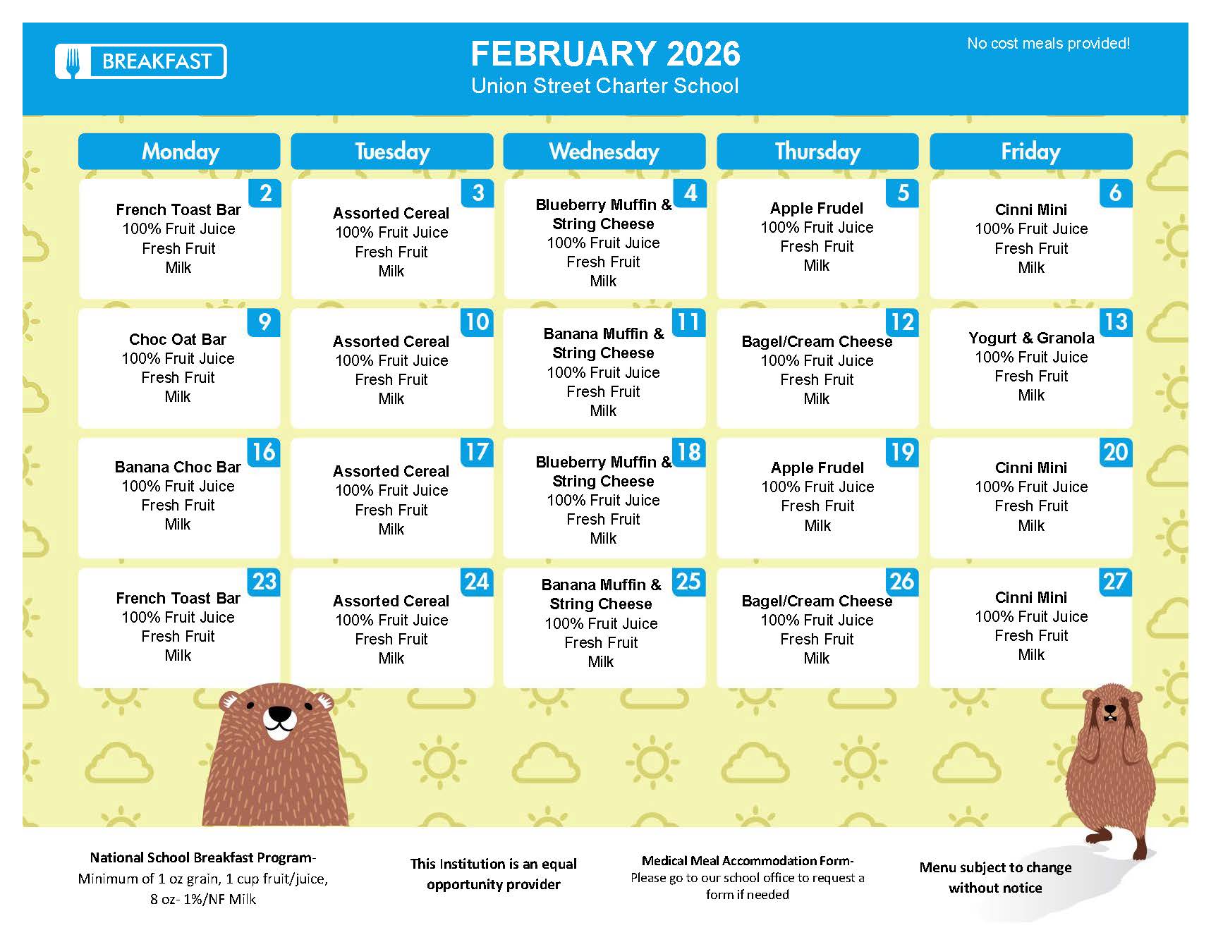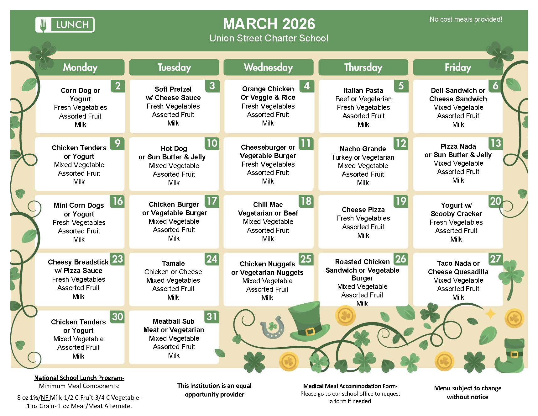Menu subject to change without notice. This institution is an equal-opportunity provider.